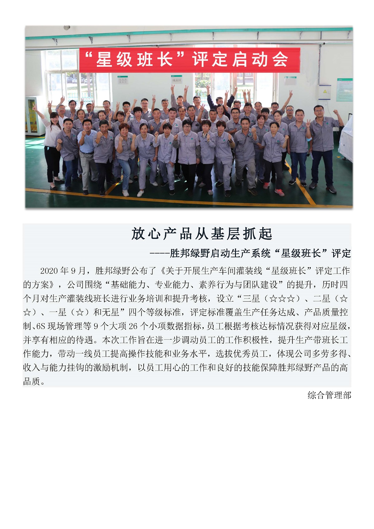 放心产品从基层抓起 ----胜邦绿野启动生产系统“星级班长”评定